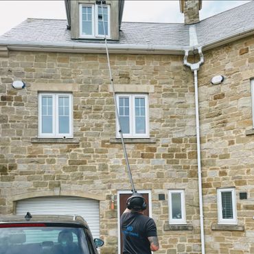 We use Reach and Wash technology. It uses pure deionised water, making it eco-friendly and no detergents are used. Deionised water offers a superior clean. There is no mineral build up and your windows will sparkle like new. It is more efficient and a much safer working practice. It also offers increased privacy and reduces disturbances. We use this system to also clean soffits, guttering, fascias, solar panels and conservatories throughout North Tyneside.